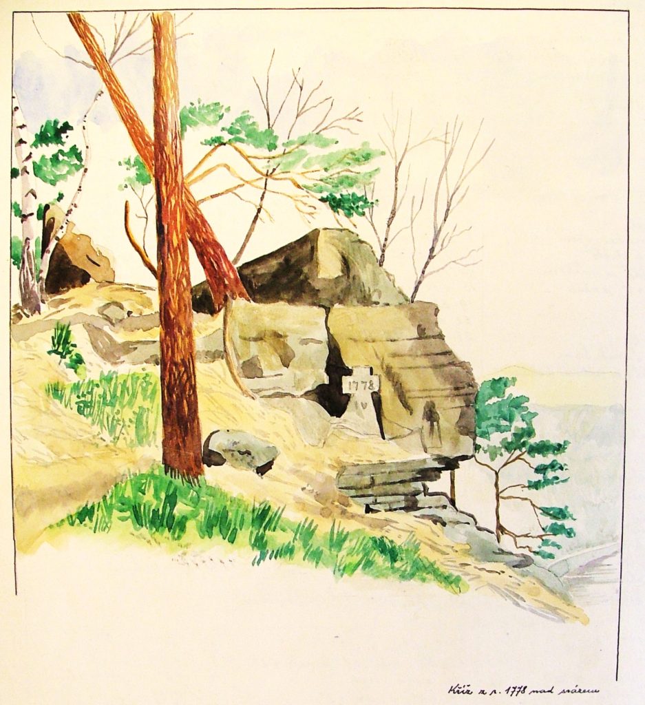Co se zde onoho roku mohlo stát, známo není. Staré kroniky Labské Stráně a Arnoltic se o žádné konkrétní tragické události toho času nezmiňují. Tajemství původu kříže by nejspíše osvětlila stará Arnoltická matrika, kdyby však v souvislosti s požárem zdejšího kostela v roce 1909 kompletně nelehla popelem. Zajímavou doměnkou je možná souvislost kříže s vpádem pruských vojsk, ke kterému v roce 1778 došlo. Na Labskou Stráň tehdy Prusové dokonce uvalili výpalné 1000 zlatých, které chudá obecní kasa řešila pronájmem jedné čtvrtiny obecního lesa jistému obchodníkovi se dřevem Stelzigovi ze Hřenska. Ten výpalné za obec Prusům zaplatil.3 Zajímavá je rovněž z té doby zmínka o tzv. husím kameni, který byl v prý v roce 1778 vztyčen u čp. 1 na místě, kde Prusové zrekvírovali a vybili mnoho hus.3 Z uvedeného je tedy zřejmé, že i v Labské Stráni toto neklidné období probíhalo a mohlo tak možná souviset s nějakou tragickou událostí. Mimochodem zřejmě o dost hůře tehdy dopadli Jetřichovice, které v roce 1778 Prusové vydrancovali.4 A aby toho neštěstí nebylo málo, vydali se uprchlé obyvatele hledat do okolních skal, kam se ukryli, aby je následně mohli okrást i o to poslední, co jim zůstalo. Podobný osud postihl i nedalekou Vysokou Lípu.5