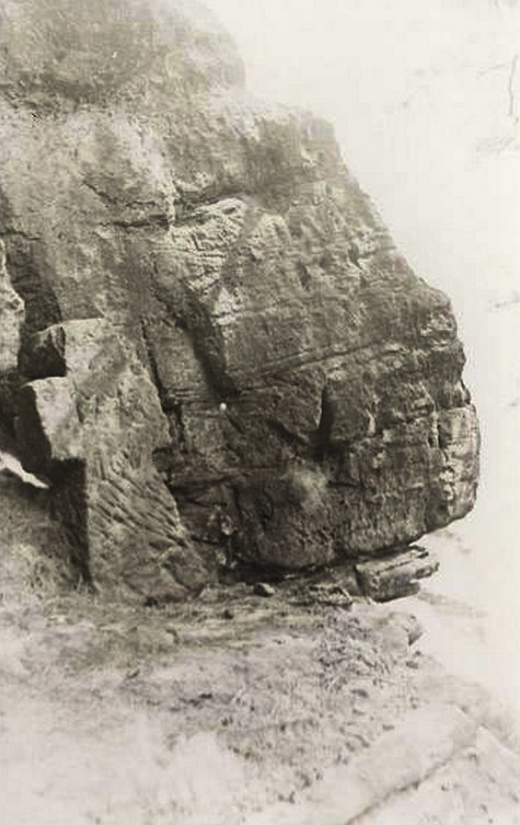 Smírčí kříž umístněný od 80. let do roku 1998, tak jak jsem ho znal, u skalního schodu vedle pěšinky (foto z archivu N. Belisové).